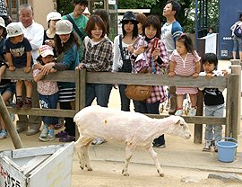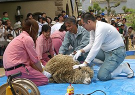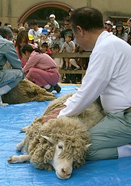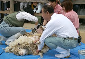 | 新緑がまぶしい風薫る5月9日(日曜日)、ふれあい広場で「ヒツジの毛刈り」が開催されました。 | |||||||||