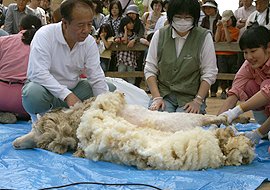 ![]() 今年も大勢のギャラリーに見守られ「メエ」は5.9kg、「テン」は4.4kgの毛が無事に刈り取られ、すっかりスリムに変身したヒツジ達に子ども達の歓声が沸きあがりました。 ![]() |