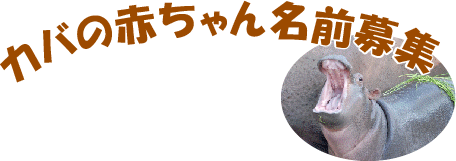 |  今年8月11日に誕生したカバの赤ちゃんの名前を募集します。園内のカバ舎に投票箱を設置し、動物園が選んだ4つの候補のうち、1つを来園者に選んでもらい、一番たくさん投票された名前に決定します。 赤ちゃんは誕生後、母親が育児に専念できるように非公開でしたが、10月13日より一般公開を始め、  現在では屋外プール又は屋内プールで母親の「ナミコ」と一緒に公開しています。「ナミコ」も落ち着いて育児をしており、赤ちゃんは順調に成長し、体重は誕生後約4ヶ月で推定150kg以上になりました。投票期間は12月12日(土)〜23日(水・祝)で、決定した名前は12月25日(金)に、園内のカバ舎とホームページで発表します。  |