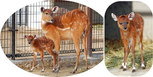 | 当園で12月18日に偶蹄目ウシ科の草食獣であるシタツンガの赤ちゃんが誕生しました。 誕生後、6日間は母親が子育てに専念できるように非公開でしたが、母子共に落ち着いており、順調に育児ができていることから、24日より公開を始めました。 王子動物園では1995年(平成7年)から飼育展示しており、今回の誕生は1999年10月以来、約10年ぶり6例目の繁殖となります。なお、現在は誕生した赤ちゃんを含め4頭のシタツンガを飼育展示しています。 |