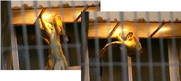 急に冷え込んだ12月中旬、寒さが苦手な動物たちは、おしくら饅頭みたいにみんなで体を寄せ合ったり、遠赤外線の暖房機の下から動かなかったり、大胆にぶら下がったり・・・