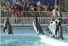 日本の寒さなんてへっちゃらなフンボルトペンギンは、スイスイとまるで空を飛ぶように水中を泳ぎ、それを見ている来園者は「おーさむ〜!」と肩を縮めていました。