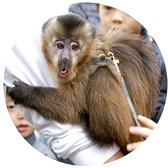 数年間、繁殖から遠ざかっていたフサオマキザル達に、待望の赤ちゃんが3月に誕生し、現在オスの「アロ」が人工哺育でスクスクと育っています。生後残念なことに園内の工事が多く行われていた影響もあり、母親から赤ちゃんが上位のメスに取られるというハプニングにみまわれました。赤ちゃんは丸2日間違うメスに抱かれていた為か、母親に戻しても母親が抱くことを拒絶し、ミルクを与えようとしませんでした。そこで赤ちゃんの命が第一と、飼育係りが母親の代わりにミルクを与えて育てる「人工哺育」に切り替えることになりました。 当初平均体重はだいぶん少なかった赤ちゃんも現在は徐々に大きく育ち、「アロ」と命名され、飼育係りの肩の上でやんちゃぶりを発揮しています。 生後9ケ月たった今ではミルクは卒業し、大人と同じくだものを食べますが、人間の赤ちゃんが食べる「チチボーロ」が好きで、指しゃぶりもします。 現在は小ザル舎の裏側通路で公開しています。 |