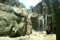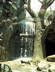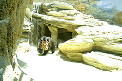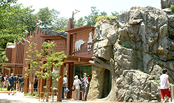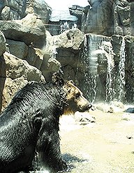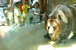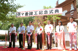 平成22年6月より大規模な改修をしてきまた「クマ舎」が完成し、平成23年7月16日に記念式典が行われました。広くなった新しい運動場は岩場や滝を配置して、立体的にクマたちの生息域を再現しており、それぞれのクマが伸び伸びと動く様子をガラス越しに間近に見ることができるようになり、王子動物園の新しい人気スポットの誕生です! |