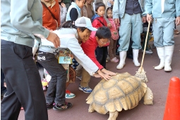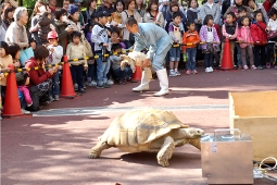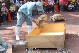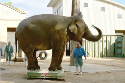 11月3日、ケヅメリクガメの「よしはる」(オス)と「キャサリン」(メス)、インドゾウの「ズゼ」(メス)の体重を測る集いが開催されました。 |