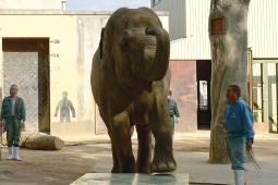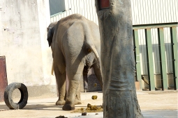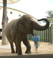 「よしはる」は2004年、この近所の街の中を散歩しているときに保護され動物園にやって来たので、正確な年齢はわかりませんが、8歳以上だと思われます。 「キャサリン」が生まれたのはガーナ共和国で、こちらもはっきりわかりませんが5歳くらいだと思われます。 |