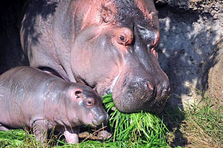| ■現在の展示状況(平成24年11月22日現在) 母親の「ナミコ」と一緒に、午前または午後の半日間、屋外のプールにいます。屋外プールにいないときは、屋内のプールでガラス越しにご覧いただけます。 ※動物の体調などの理由で変更になる場合もあります。 |