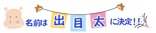 | 父「出目男」と母「ナミコ」の間に10月2日に生まれたオスの赤ちゃんの名前を一般公募し、9日間で2,250通の応募がありました。 その中より、活発でやんちゃなイメージにぴったりという理由から「出目太」に決定しました。 |