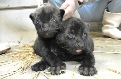 | 王子動物園では、今年11月26日(火)にジャガーの赤ちゃんが2頭誕生しました。当園でのジャガー誕生は1993年(平成5年)以来20年ぶりです。 父親「アトス」と母親「ローラ」との間に生まれた赤ちゃんはオスとメスで、ともに両親と同じ黒い体色をしています。(通常ジャガーの体色は黄色に黒い斑模様がある) 現在母親のローラは2頭の育児を行い、赤ちゃんは順調に成長しています。 ローラが育児に専念できるよう、当分の間は母子ともに非公開といたします。 |