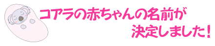 昨年9月25日に誕生したコアラの赤ちゃんの名前を募集しました。赤ちゃんの名前は、動物園で選んだ4つの候補のうち、1つを来園者の方々に選んでもらい、一番たくさん投票いただいたものに決定しました。 コアラの赤ちゃんの名前は 「桜花(オウカ)」に決まりました。 |