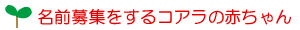 | 王子動物園で昨年5月12日に誕生したコアラの赤ちゃんの名前を募集します。 赤ちゃんの名前は、動物園で選んだ3つの候補のうち、1つを来園者の方々に選んでもらい、一番たくさん投票いただいたものに決定します。結果はコアラ舎に掲示するとともに、ホームページ(http://www.kobe-ojizoo.jp)でも発表します。 |