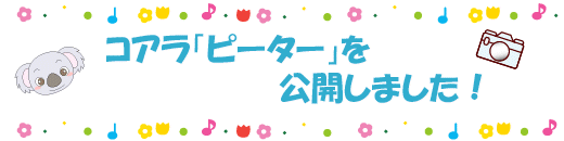 5月31日(木)よりコアラ「ピーター」の一般公開を開始しました!5月16日(水)に名古屋市東山動植物園よりオスのコアラ「ピーター」が来園しました。王子動物園では4頭のメス「ウメ」「ウミ」「オウカ」「ぼたん」を飼育しており、今後ピーターとの間で繁殖を試みます。 ※ピーター来園時の様子を5月17日のスタッフブログ(神戸市立王子動物園公式サイト)に書いています。ぜひ、ご覧ください。 |