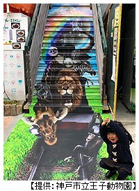 本物のジャイアントパンダ、コアラ、ライオンなどをご覧いただいたら、階段のトリックアートもご覧ください。