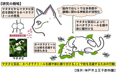 ネペタラクトールは蚊を忌避する活性を示し,マタタビ反応は寄生虫や伝染病を媒介する蚊から身を守るための重要な行動であることが明らかになりました。