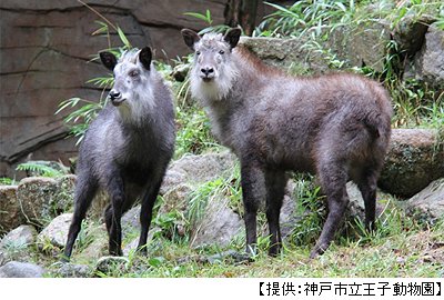 さつき(オス、四国産、6歳) サチコ(メス、四国産、5歳) ニホンカモシカについて 王子動物園と森林植物園は1964年よりニホンカモシカを共同飼育しています。 ニホンカモシカは日本固有の動物で本州、四国、九州に分布しています。四国産のニホンカモシカは本州産のニホンカモシカとは異なる地域個体群で、全国の動物園でも系統をわけて飼育しています。見た目は四国産個体の方が体が小さく、体毛も黒っぽいことが特徴です。 国内の飼育園館が相互に協力して繁殖を推進し、ニホンカモシカの保全に努めています。 |