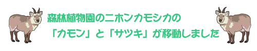 | 神戸市立森林植物園にいる特別天然記念物ニホンカモシカは、当園と共同飼育をしています。 このたび、ニホンカモシカ(本州産)の「カモン」(オス)17歳と「サツキ」(メス)7歳が、繁殖のため、11月8日(火)に、富山市ファミリーパークへ移動することになりましたのでお知らせします。 |