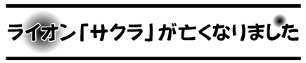 | 王子動物園のライオンのメス「サクラ」が2022年(令和4年)12月29日(木曜日)に老衰で死亡しました。満24歳でした。 12月22日(木)頃から食欲不振となり,寝室内で療養し投薬治療を継続していましたが,残念ながら12月29日の朝に死亡しているのを確認しました。2020年(令和2年)に死亡したオスの「ラオ」(23歳)と同じく大往生の生涯でした。 「サクラ」は国内でもトップクラスの長寿ライオンで、2年前に死亡したオスの「ラオ」との間に3頭の子を出産、また「ラオ」との仲睦まじい様子を見せるなど、これまで多くの皆様に親しまれました。改めて、お礼を申し上げますとともに、「サクラ」に感謝の気持ちを表します。 なお、2023年(令和5年)1月2日(月)からしばらくの間、円形猛獣舎に献花台を設置いたします。 |