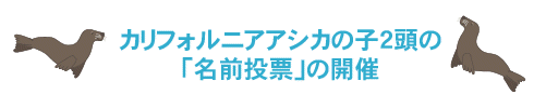 | 昨年6月にカリフォルニアアシカのオス「カイト」とメス「コナツ」「スミレ」の間にそれぞれメス1頭、合計2頭の子が誕生しました。元気にすくすくと成長し、現在生後8ヶ月齢を迎えました。 2頭は昨年末より、離乳のため母親と一時的に離れてペンギン舎の屋内展示場で過ごしており、現在、時間を限定して公開しています。3月9日(木)からはアシカ池に戻る予定としています。 多くの方々に愛され、種の保存に関心を持っていただけるよう、3月2日(木)から名前投票を開催します。飼育担当が用意した3つの候補のうち、1つを来園者の方々に選んでもらい、一番多く投票いただいた名前に決定します。結果はアシカ舎に掲示するとともに、王子動物園のホームページでも発表します。たくさんの投票をお待ちしております。 |
