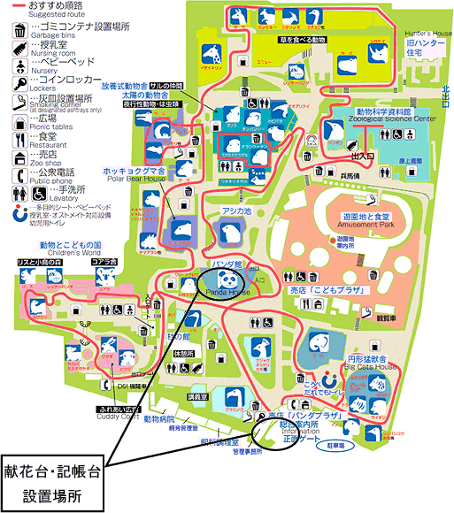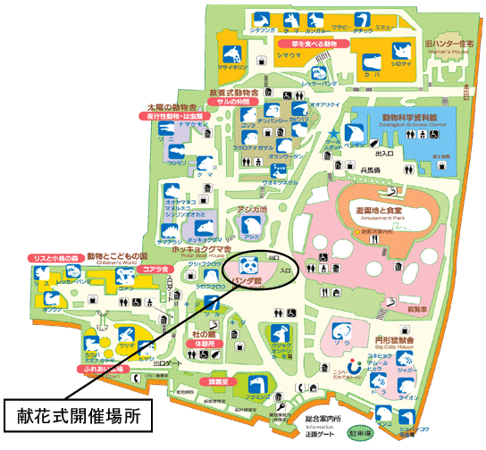 | ・ | 式次第: | (1).園長あいさつ (2).関係者及び一般来園者による献花 |