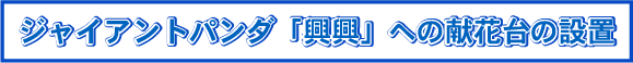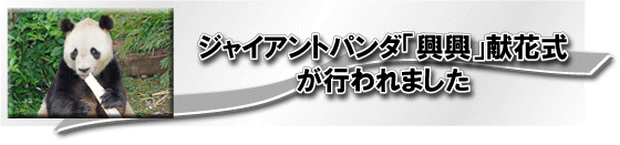 | 当園では、9月9日に死亡したジャイアントパンダ「興興(コウコウ)」の献花式を10月16日(土)に行います。 「興興」は日中共同飼育繁殖研究のため、2002年12月に中国四川省の中国大熊猫研究中心(臥龍繁殖センター)から来園し、メスの「旦旦(タンタン)」と共に来園者に親しまれていました。 |
