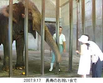 王子動物園で1951年(昭和26年)の開園以来、長年飼育していましたインドゾウの「諏訪子」(メス)が平成20年4月10日(木)に死亡しました。死亡原因は現在調査中です。「諏訪子」は1943年生まれで今年65歳になり、日本で飼育されたインドゾウとしては最高齢でした。 1950年(昭和25年)に王子動物園の前身である神戸市立諏訪山動物園に来日し、次の年の当園開園日には歩いて現在の地までやってきました。それから現在まで57年間、当園の歩みとともに飼育され、王子動物園のシンボル的な存在として、たくさんの方に親しまれてきました。 「諏訪子」は2ヶ月前から食欲が落ち始めエサの工夫をしていましたが、1ヶ月ほど前からほとんど食べなくなりました。4月4日午前1時ごろから立つことができなくなりましたが、午後には一旦立ち上がることができました。その後、4月7日から寝たきりとなり、残念ながら死亡しました。人間の年齢に例えると100歳を超えており、天寿を全うしました。 これで、王子動物園で飼育展示されているインドゾウは昨年生まれた赤ちゃんゾウの「オウジ」とその両親である「マック」「ズゼ」の3頭となり、開園当時から飼育されていた動物はいなくなりました。 |